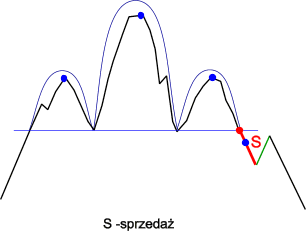 - sprzedaj, jeśli cena spadnie przynajmniej 3% poniżej linii szyi